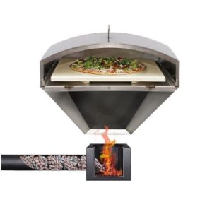 Ahju integreerimiseks grilli võta eelnevalt grillist välja küpsetusrest ja põletikate. Aseta ahi otse pelletipõleti peale, kust soojus suunatakse otse üles pitsakivi ümbritsevasse terasest, kahekordse seinaga küpsetuskambrisse. See protsess tõstab teie pelletigrilli sisetemperatuuri tõelise puuküttega pitsaahi temperatuurini. See loob temperatuuri kuni 420°C, võimaldades teil küpsetada restorani kvaliteediga pitsasid 2–4 minutiga. See on kasulik ka leiva küpsetamiseks temperatuuril 200°C-300°C või gurmeesteigi “ehmatamiseks”.